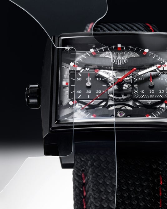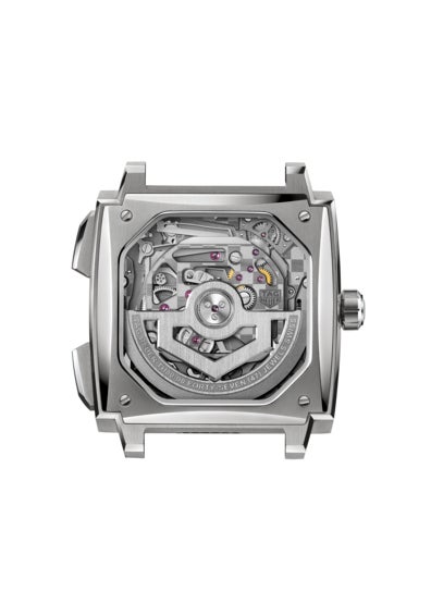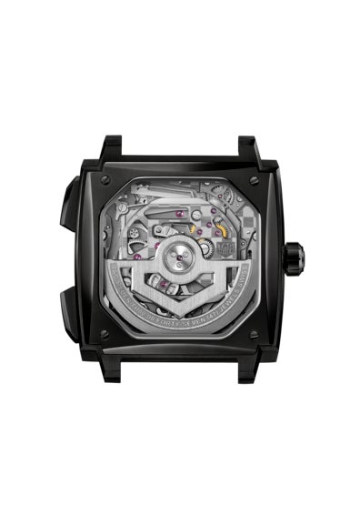 1969年に初代「キャリバー11」で確立されたシグネチャーである左側のリューズに加え、新たに採用された細長いプッシュボタンが特徴のこのモデルでは、人間工学を指針としてデザインを一新させた40 mmのグレード5チタン製ケースが目を引きます。角型のサファイアケースバックは、腕元への装着感を新たな次元へと高めることに貢献しながら、「タグ・ホイヤー モナコ」のケースに絶妙にフィットするよう開発された角型ムーブメントを余すところなく堪能することを可能にしています。