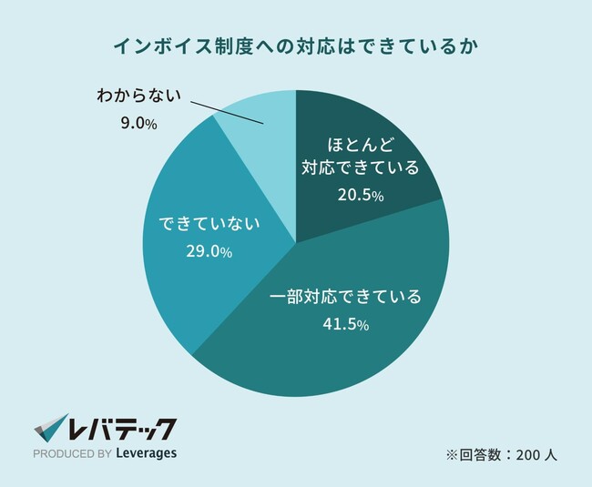 インボイス制度への対応については、「一部対応できている(41.5%)」と回答した企業が最も多い結果となりました。