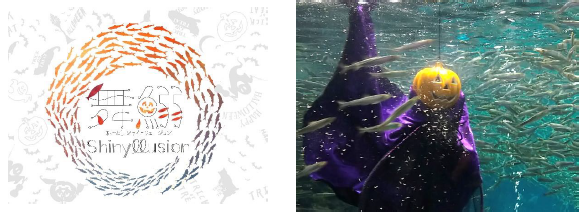 約2万匹のマイワシが大水槽内を縦横無尽に泳ぐ、「舞鰯シャイニリュージョン」。ハロウィンバージョンでは、エサの入ったカボチャ型のバケツが出現し、ハロウィン気分を盛りあげます。ハロウィンならではの演出でマイワシが群泳する「不思議」や「新しい発見」に出会えます。