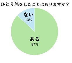 約9割の読者が「ひとり旅」をすでに経験、旅行スタイルのひとつとして着実に定着ひとり旅をしたことが「ある」と回答した読者は87%。「一人だと列車の席が取りやすい」、「直前でも予約が可能」、「ホテルのグレードを気にしなくていい」といった、旅慣れた様子が自由回答からも伺え、ひとり旅は旅行スタイルのひとつとしてすでに定着していることが分かります。