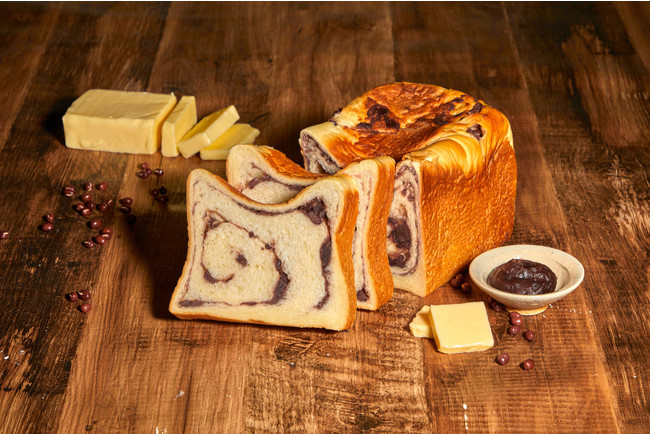 米粉使用の湯種製法でもちもちの食パンにあんこをたっぷり巻き込み北海道産バターとフランス産岩塩で深い味わいに。
