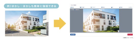 保管している物件画像を加工することができます。(回転、切り抜き、リサイズ、明るさ・色調整、ぼかし加工など)
