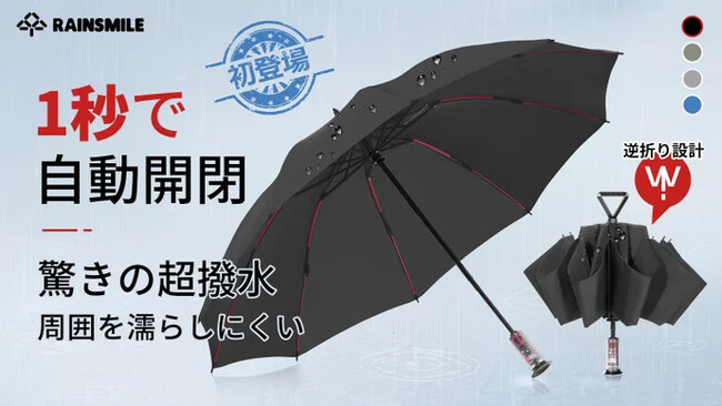 1秒で自動開閉、強風に強く雨水で周囲を濡らさない最新の折り畳み傘