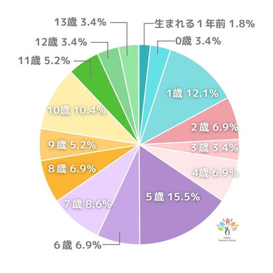 5歳からが一番多く15.5%、次に1歳からが12.1%、10歳から10.3%と続きました。小学校に入学する6歳では6.9%で、小学校1年生までに49.9%が祖父母とお子さんの関係の困りごとを持ち始めていることが伺えました。