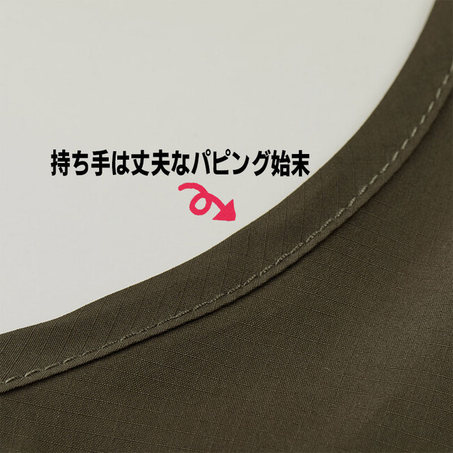 また、アウトドア・スポーツ用品に使われる軽くて丈夫なリップストップ生地を採用し、生地の強度が高く、長く安心して使うことができます。