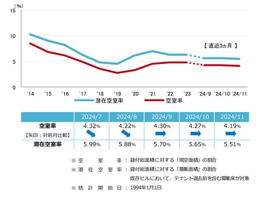 空室率 前月から小幅に低下 幅広い業種で前向きな需要が中心