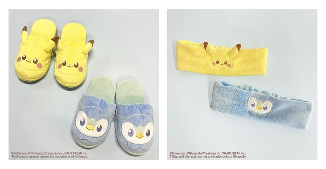 お部屋での時間を大好きなポケモンたちと一緒に過ごせる、ルームアイテムが登場します。ふわふわ素材が可愛いスリッパはピカチュウ&ポッチャマの2種展開です。キュートなヘアバンドは忙しい朝のテンションを上げてくれるアイテムです。