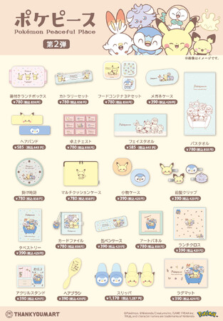「カワイイを手のひらに」をテーマに、390円(税込429円)を中心とした価格でバラエティ豊かなアパレル雑貨を揃える「サンキューマート」は、ポケモンとにんげんたちが集まるシェアハウス「ポケピース」の新商品を、全国のサンキューマート店舗および公式オンラインショップで6月28日(水)より入荷順次販売開始いたします。