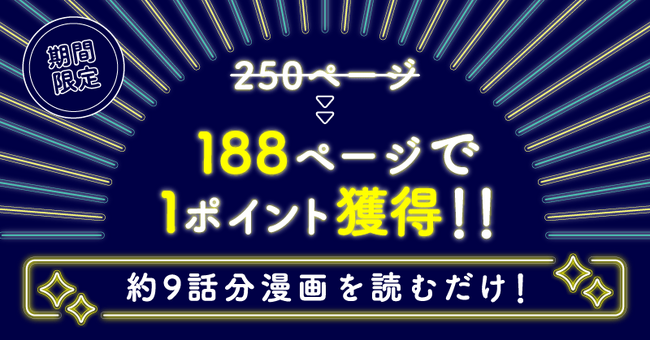 「スキマ」では漫画を250ページ読むごとに1ポイントを贈呈していますが、イベント期間中は188ページで1ポイントを贈呈致します。また、漫画を多く読んだ上位8名には888ポイントをプレゼント致します。