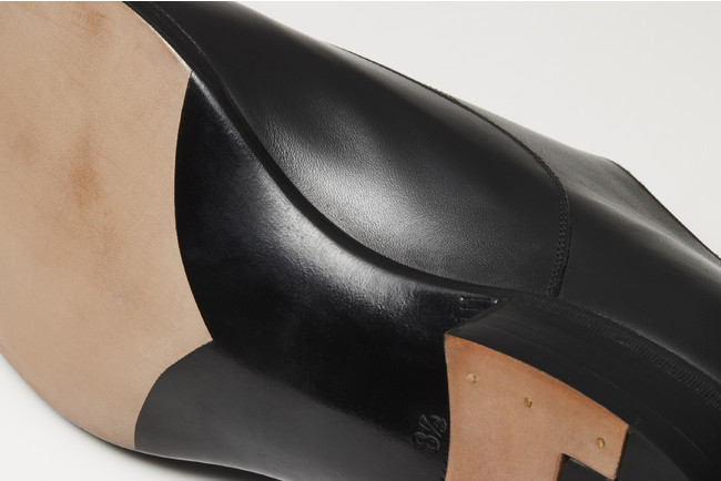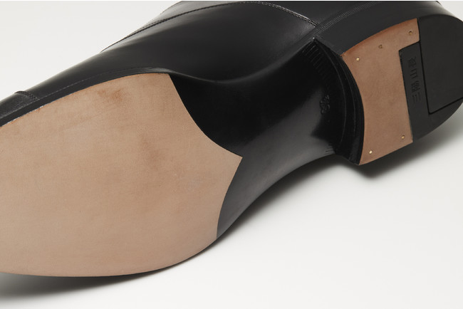 また、土踏まず部分を黒く塗り上げた「半カラス仕上げ」も「匠」シリーズの特徴です。履いているときは見えない部分でありながら、そこにこだわりを持つところもニッポン靴の美点です。
