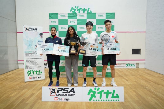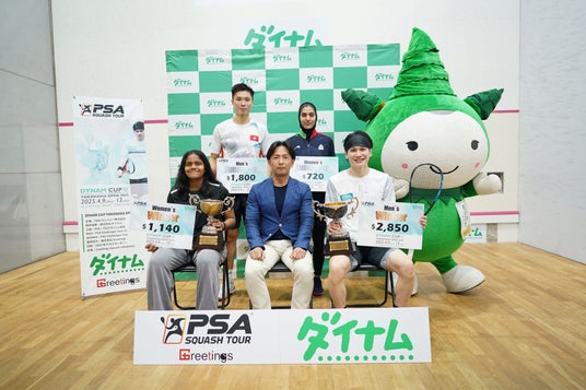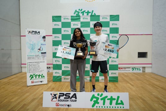全国46都道府県にパチンコホールを展開する株式会社ダイナム(本社:東京都荒川区西日暮里 代表取締役:保坂 明)は、4月9日~13日までの5日間、神奈川県横浜市で開催された「DYNAMCUP PSA YOKOHAMA OPEN 2025」に協賛いたしました。男子は机 龍之介選手(ダイナム所属)、女子はY.JadishKumar(ヤミシタ・ ジャディシュクマー)選手(マレーシア)が見事優勝を飾りました。ダイナムカップは、国内におけるスカッシュ競技の普及と、競技力向上を目的に2015年よりスタートし、今回が18度目の開催となりました。今大会は、国内選手のさらなる活躍をサポートするため、国内最高賞金額での開催とし、世界10カ国から有力選手47名が出場しました。※女子選手1名棄権