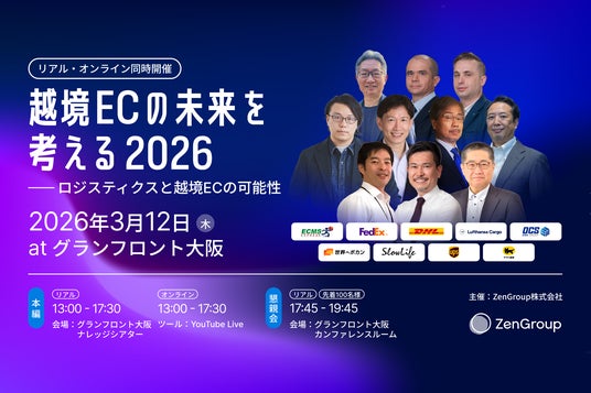 越境ECをトータルで支援するZenGroup株式会社(本社:大阪府大阪市)は、2026年3月12日(木)、グランフロント大阪にて「越境ECの未来を考える2026-ロジスティクスと越境ECの可能性」を開催します。