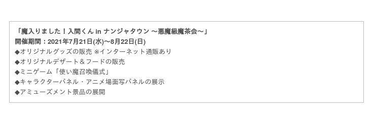 「魔入りました!入間くん in ナンジャタウン ~悪魔級魔茶会~」 大阪・梅田での開催について