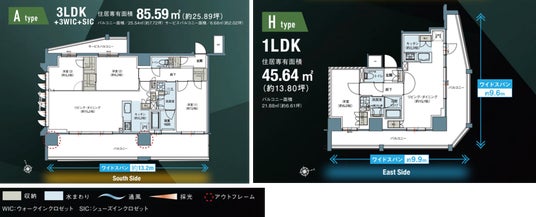 住居専有面積 : 45.64平方メートル ~85.59平方メートル