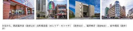 駅前ならではの立地で、行政施設や病院、元町商店街(ガレリア・モトマチ)も近く、西武福井店の地下にはスーパーマーケットのカジマート(徒歩1分)もある為、日常のお買い物にも便利です。