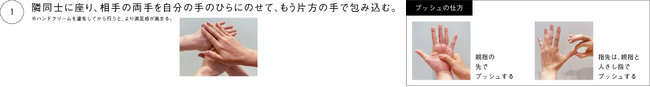 さらに、手技の最初の「相手の両手をしっかり包み込むこと」、最後の「相手の後ろにまわり、両肩からひじまで