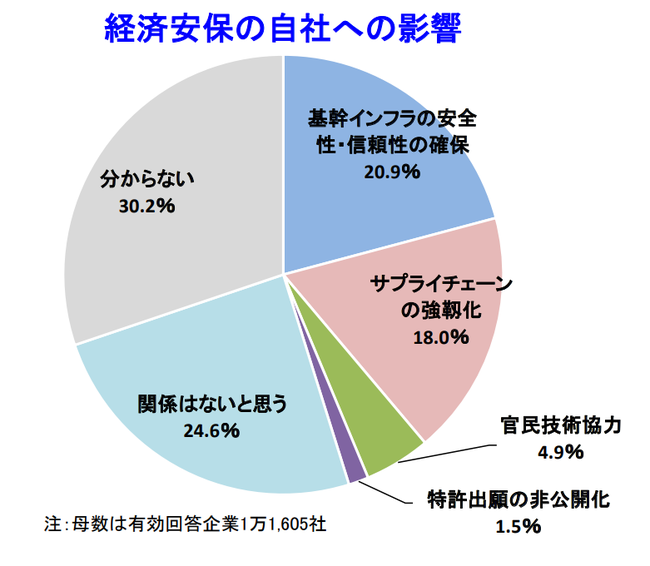 「経済における安全保障上の信頼性が向上することは好ましいが、それにともなう企業活動への制約や規制強化に繋がらない努力をしてほしい」(フェルト・不織布製造、東京都)