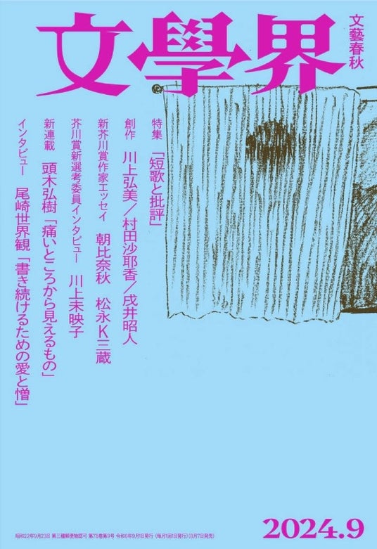 9月号は特集「短歌と批評」、また新芥川賞作家のお二人のエッセイと新芥川賞選考委員・川上未映子さんのインタビュー、川上弘美さん、村田沙耶香さんをはじめとする創作の掲載と、充実した号でした。