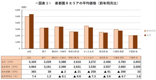 首都圏の1戸あたり平均価格は前月比、前年同月比ともに下落した。