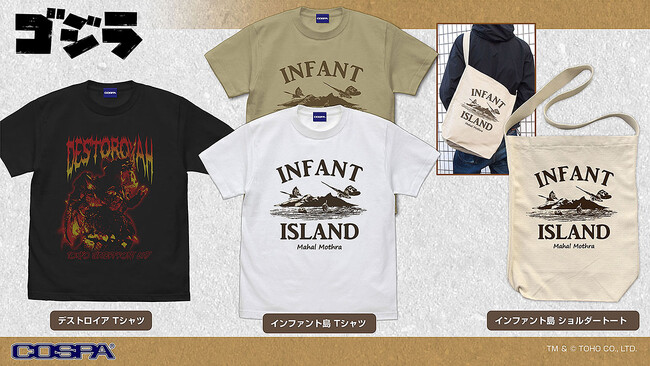 公式キャラクターコスチュームやアパレル・グッズの企画、開発、製造を行う株式会社コスパは、『ゴジラ』より新作Tシャツやトートバッグを発表。〈ゴジラ・ストア〉での先行販売も行う。