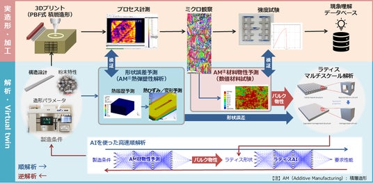 「先進製造・設計・解析技術の応用による革新複雑構造/材料における材料科学基盤の開拓」プロセス解析・評価フロー(画像制作:JAXA・東京大学・国立天文台・サイバネット)