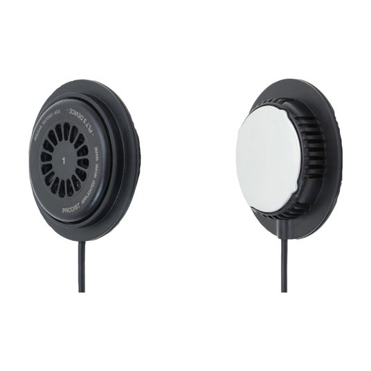 「アイスタッチデバイスベスト」には、電流を流すと冷却するペルチェデバイスを背中と両脇下の3カ所に搭載しています。ペルチェデバイスは、強・中・弱の3段階冷却モード切り替えが可能です。強モードで稼働する場合、環境温度30℃、湿度60%の状態で稼働前と比較すると、1分後に冷却面の低下温度は約14.3℃※3になります。