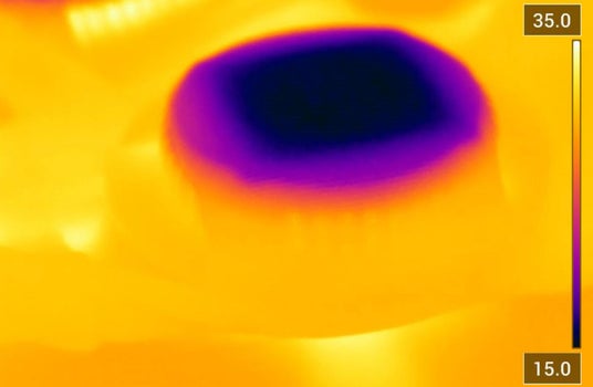 〈強モード稼働時、サーモグラフィで見た冷却面の様子〉