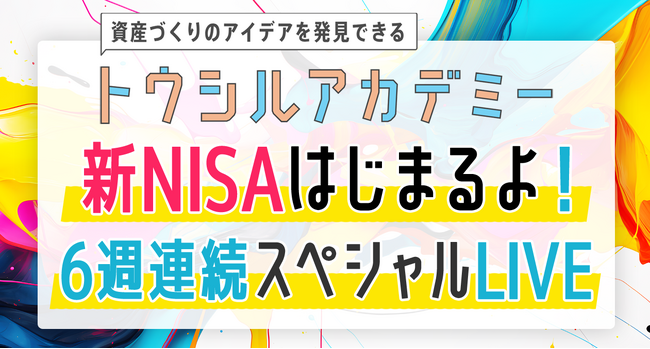 「新NISAはじまるよ!6週連続スペシャルLIVE」は、2023年11月6日に開始した資産づくりをサポートする学びの総合ブランド「トウシルアカデミー」主催で実施するオンラインセミナーです。2024年から始まる新NISAでの資産づくりを全力でサポートするため、2023年11月15日(水)から同年12月23日(土)まで、株式会社ウェルスペント代表取締役の横田 健一氏や、ワーママ投資家のえま氏、個人投資家のDAIBOUCHOU氏など、豪華講師陣をお招きし、新NISAの手続き方法や商品の選び方、新NISAでつくる家族全体のポートフォリオのご提案など、6週間連続で新NISAに関連するスペシャルセミナーを実施します。本セミナーは、楽天証券の口座がなくても、どなたでもご参加いただけます。