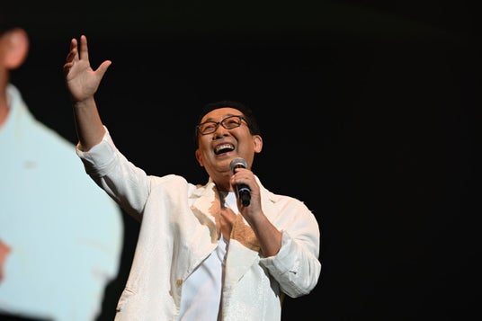 「せっかくハピネスアリーナでこけら落としをするなら、何か意味のあるものにしたかった。今年の1月には能登では震災が、その後には豪雨があり、まだまだ能登は大変な状況の中にいます。今回のコンサートで皆様からいただくチケット代をすべて能登に寄付することで、このこけら落としがとても意味のあるものになると思って、旭人さんに提案させていただきました。今日はライブを楽しんでいただき、そのチケット代金をすべて能登へ届けます。このような素敵な場で想いを届けられることはとてもうれしいですね。皆様、今日は楽しんでいってください。」(さだまさし)