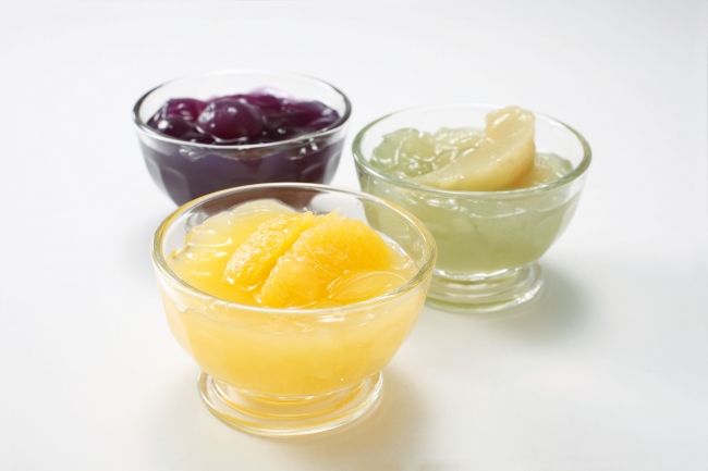 ↑とろける食感が魅力的な夏のデザート。よりすぐりのフルーツを閉じ込めました。