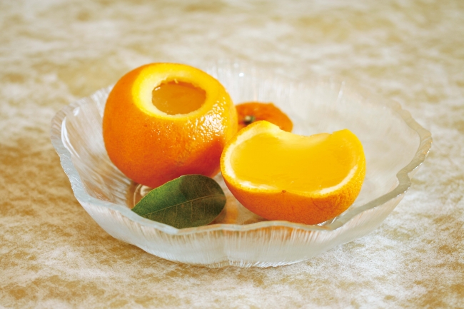 ↑甘い果汁をたっぷりとたくわえ、上品な甘さと香りを閉じ込めたプリン。