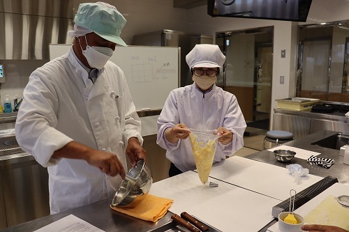 with コロナ時代を生き残る製菓衛生師の養成を目指し、徹底した衛生管理にこだわり、食を扱うプロを養成している。