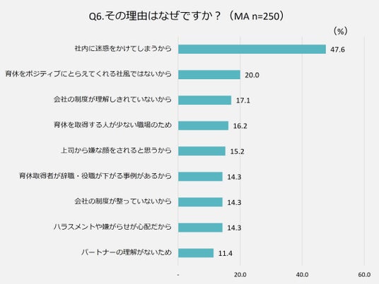 その理由として、「社内に迷惑をかけてしまうから(47.6%)」が圧倒的に多い結果となりました。(Q6)