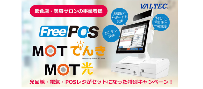 光回線(MOT光)・電力サービス(MOTでんき)をご契約いただいた方を対象に、POSレジシステムの設置費用が0円に。感染症による影響を受けた事業者様の事業継続に貢献します。