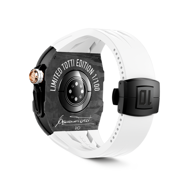 「RSC45 LIMITTED TOTTI EDITION」は、世界限定100本のみ製造され、バックケースには、同氏のサインと1~100のシリアルナンバーが刻印されています。さらにバックルには背番号である「10番」が刻印されています。