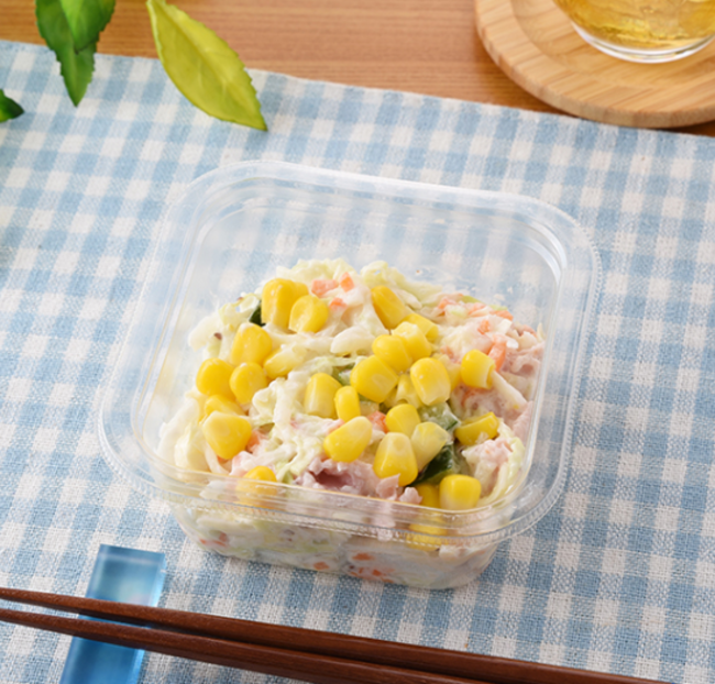 ちょうどよい食べ切りサイズでちょっとずつ選べる楽しさ、そして気軽に野菜が摂れる、をコンセプトとした小容量の惣菜・サラダにおいて、容器内の空気をガスに置き換え密封(ガス置換包装)することで、消費期限を2日から3日へ、従来より1日延長を実現しております。また、ふた部分を密封シールにすることで、プラスチック使用量の削減も見込んでおります。
