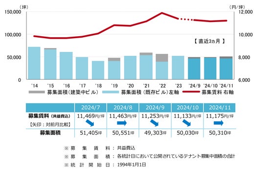 募集賃料 5ヵ月ぶりで小幅に上昇 11,000円/坪台前半での動きが継続