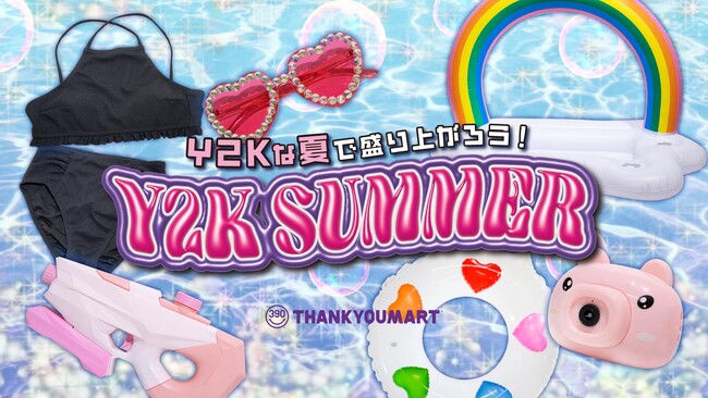 390円(税込429円)を中心としたかわいいアイテムが集まるショップ「サンキューマート」を運営するエルソニック株式会社は、トレンドのY2Kスタイルで夏レジャーを盛り上げるための新商品シリーズ「Y2K SUMMER」の商品を、全国のサンキューマート店舗と公式オンラインショップで5月下旬より入荷順次販売開始いたします。