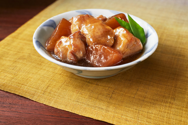 鶏もも肉と大根に、かつお節や昆布の旨みを利かせた和風だしをしっかり染み込ませた一品です。はちみつでまろやかな甘みを加え、少量の生姜ですっきりとした味わいに仕上げています。
