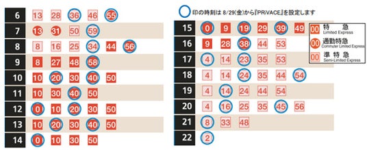 ■新たに『PRiVACE(プライベース)』を設定した2300系車両を3編成増備することで1日あたりの運行本数を平日159本(55本の増)、土休日167本(56本の増)に拡大します