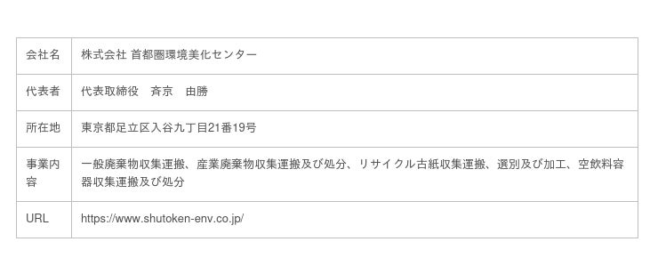 首都圏環境美化センターは、企業理念として「“リサイクルは地球サイズの思いやり” ゼロエミッションの実現に向けて・・・。」を掲げ、飲料系メーカー等と連携した、ペットボトルのメカニカル・ケミカルリサイクルによる「ボトル to ボトル」へのプロジェクトにも多数参画するなどの取組みを推進しておりました。