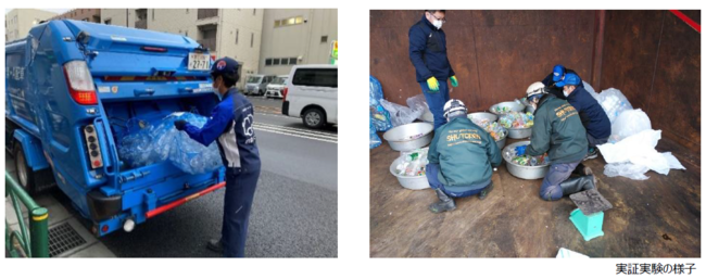 本実験は、本来マンションから廃棄されたペットボトルは主に行政による回収(一般廃棄物)、オフィスビルなどの業務系施設から廃棄されたペットボトルは民間による回収(産業廃棄物)と別々のルートで回収されるものを、一元回収することで運搬時に発生するCO2の削減、ならびに回収コストの合理化を高める水平リサイクルの展開可能性を検証するものです。