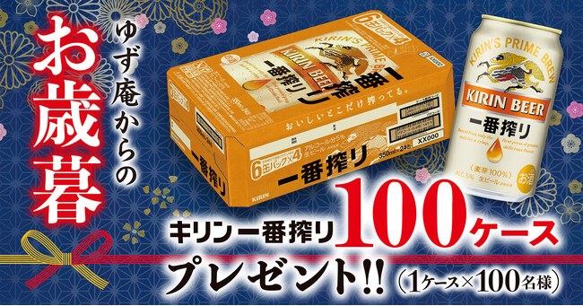 株式会社物語コーポレーション(本社:愛知県豊橋市/代表取締役社長:加藤 央之)が、全国94店舗展開する『寿司・しゃぶしゃぶ ゆず庵』(以下、ゆず庵)は、本日2022年11月29日(火)より「ゆず庵からのお歳暮」キャンペーンを開催いたします。キャンペーンにご応募いただいた方の中から、抽選で100名様に「キリン 一番搾り 350ml×1ケース(24本)」をプレゼントいたします。