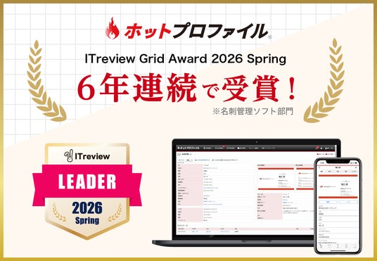 株式会社ハンモック(本社:東京都新宿区、代表取締役社長:若山 大典、証券コード:173A、以下「ハンモック」)が提供する、名刺管理・営業支援ツール「ホットプロファイル」は、アイティクラウド株式会社が主催する「ITreview Grid Award 2026 Spring」の「名刺管理ソフト部門」「営業リスト作成ツール」において、「Leader」を受賞しました。また、「SFAツール(営業支援システム)」「メール配信」「CRMツール」では「High Performer」を受賞しました。