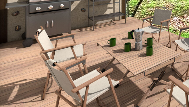 陽射したっぷりのデッキ、または川のせせらぎが聞こえるデッキの2タイプのデッキがございます。