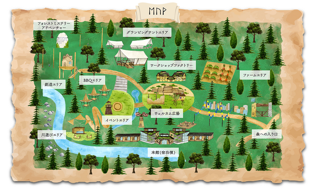 株式会社イオンファンタジー(本社:千葉県千葉市、代表取締役社長:藤原徳也、以下、当社)は、エンターテイメント型グランピング施設、泊まれる冒険フィールド「ミューの森」(以下、本施設 所在地:上野原市棡原)を2023年7月21日(金)にオープンします。本施設は、当社がファミリー向けエンターテイメント企業として長年培ってきた強みを活用して「子どもの体験価値創造」を目指し、「自然との共生」をコンセプトに、子どもとそのファミリーが1日中自然を遊び尽くせるコンテンツを提供してまいります。本日より、宿泊や日帰りBBQ、体験コンテンツの予約を開始します。