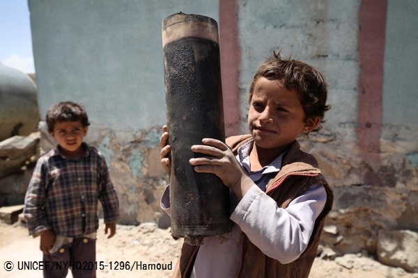 殺害され、重傷を負い、あるいは戦闘員として徴用される子どもたちの数は増え続けています。学校で安全に学習しているべき子どもたちが、戦闘の前線で銃弾から逃れようとしているのです。子どもたちはイエメンの未来であり、いつどこにおいても守られ、危険から遠ざけられなければなりません。