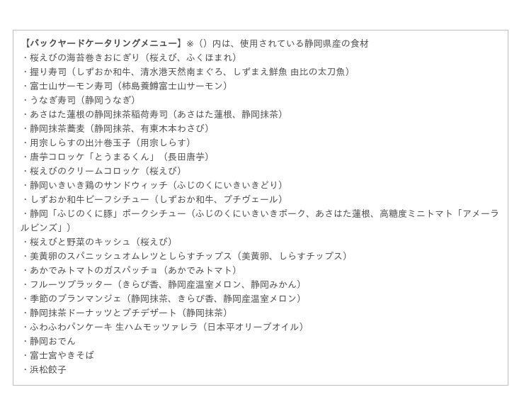 ■静岡県産の食材を使用した豪華バックヤードケータリングでSDGsを推進!容器やカトラリーには脱プラ素材を採用!