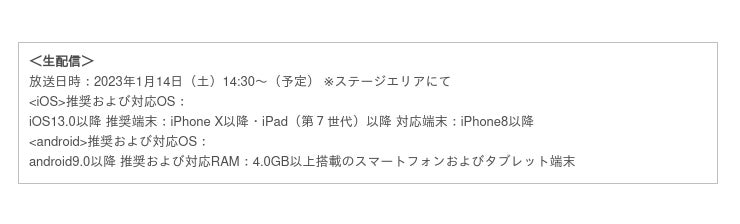 開催日時 :2023年1月14日(土) 開場13:00 開演15:00 終演19:30(予定)