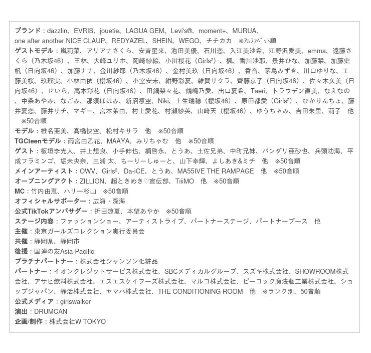 公式サイト :https://tgc.girlswalker.com/shizuoka/2023/